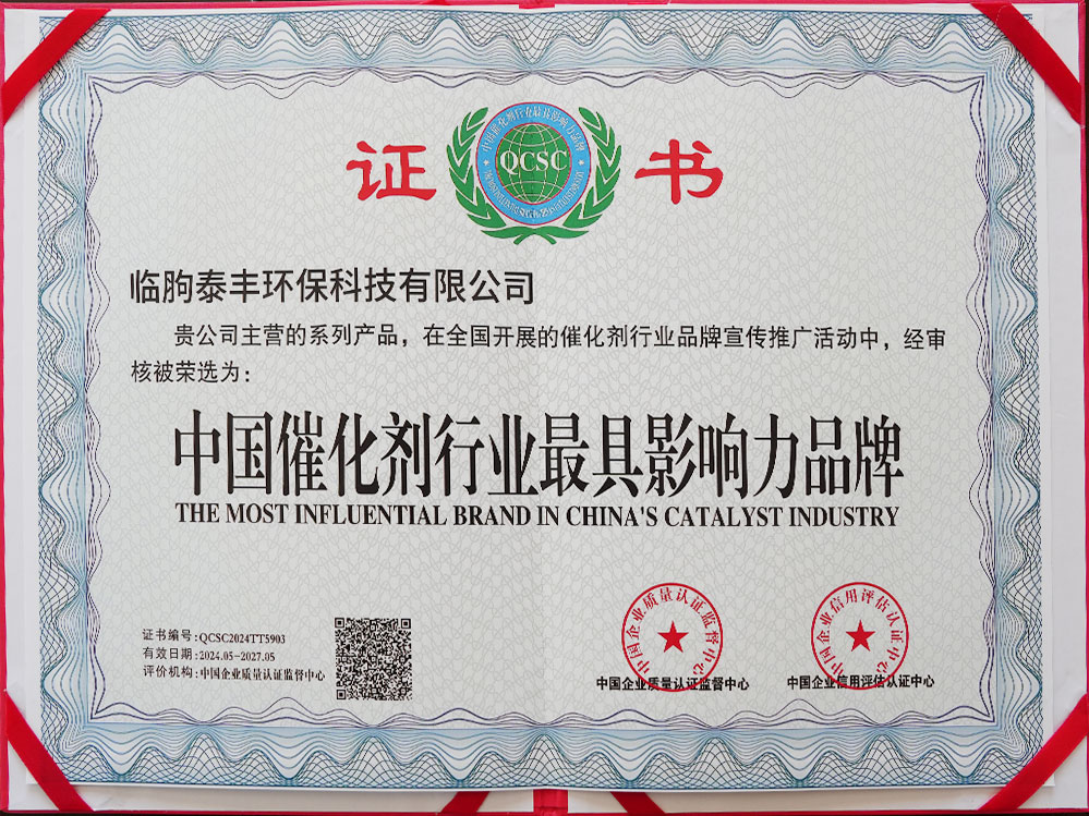 中国催化剂行业最具影响力品牌证书